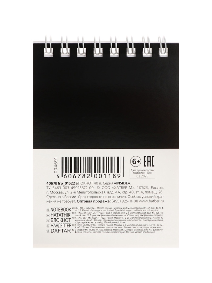 Блокнот А7 40л на гребне "INSIDE", обл мел карт 40Б7B1гр_01622 — Характеристики
