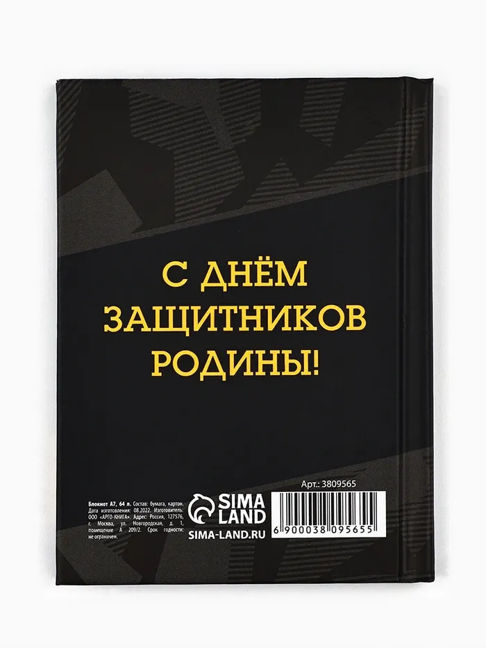 Блокнот А7, 64 л. в твердой обложке «23 февраля. Настоящий герой» — Характеристики