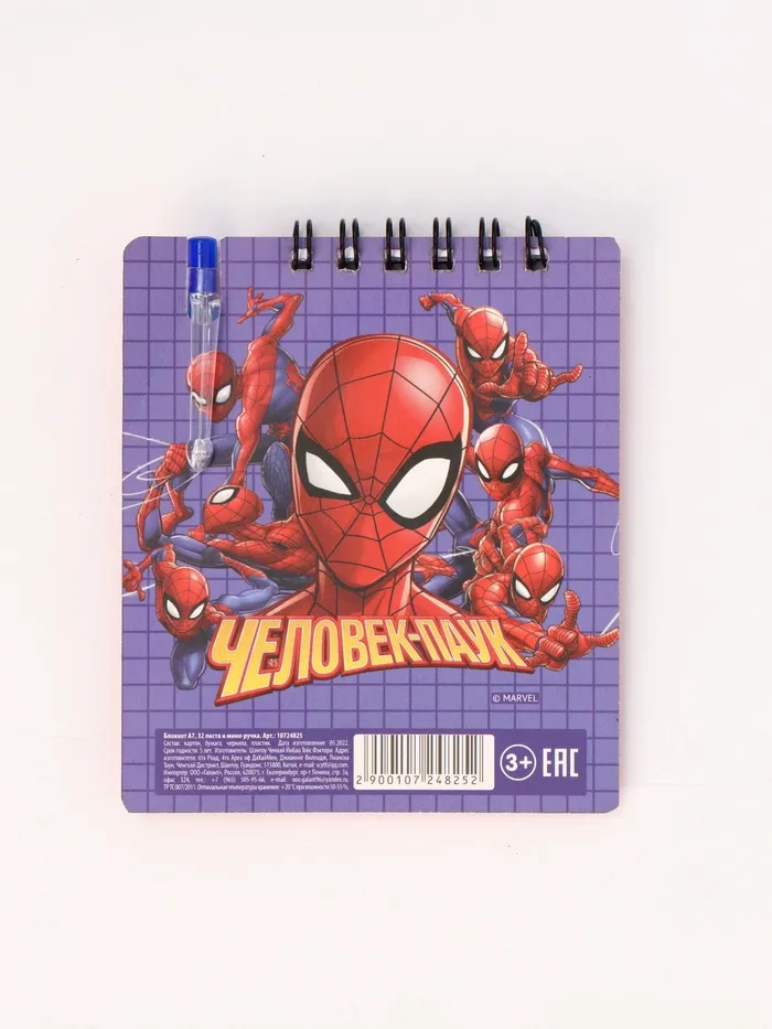 Блокнот А7 с мини-ручкой «Человек-паук» — идеальный спутник для юного супергероя! Яркий дизайн с любимым персонажем, компактный размер, удобен для записей в школе или дома. Отличный подарок мальчику на праздник. Пусть каждый день будет наполнен приключениями и крутыми идеями!