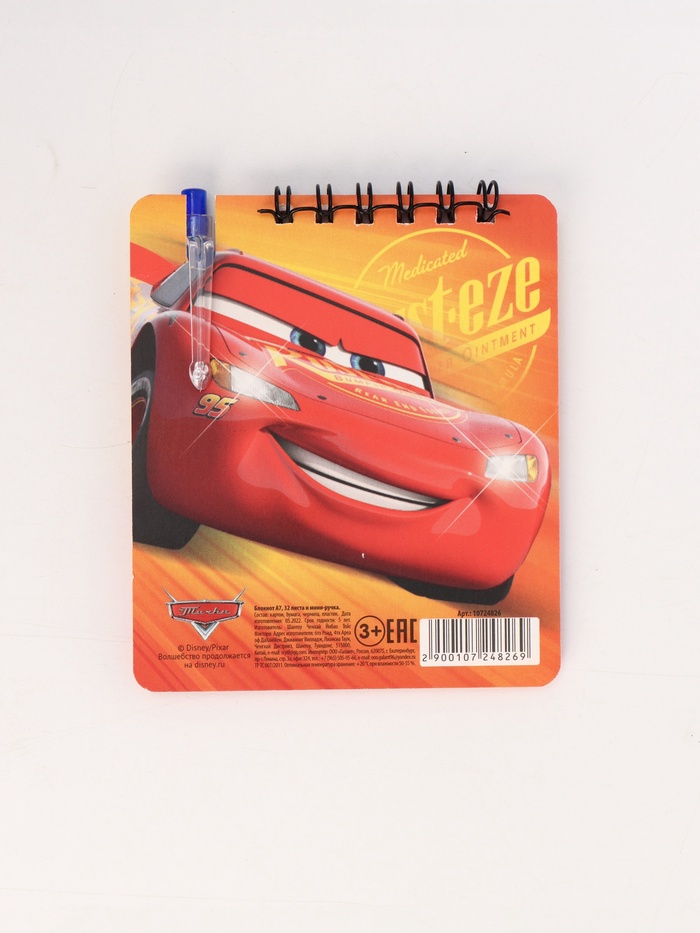 Блокнот А7 с мини-ручкой «Тачки» с изображением любимого героя Молнией МакКуином — яркий и практичный аксессуар для юного гонщика! Компактный формат, удобен для записей и рисунков. Отличный подарок мальчику на день рождения или праздник. Поехали за новыми приключениями и идеями!