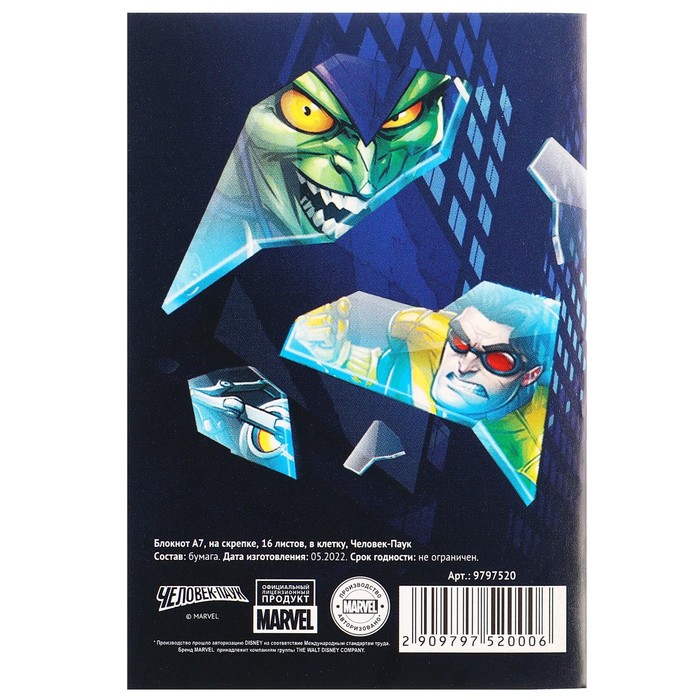 Блокнот А7, на скрепке, 16 листов, Человек-паук — Характеристики