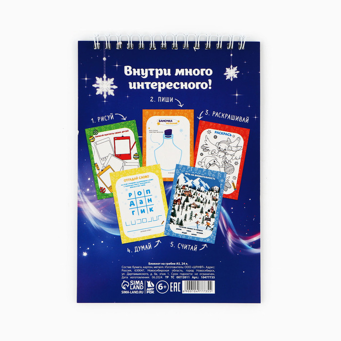 Блокнот детский, А5, 24 листа, с заданиями на гребне «С Новым годом! Символ года» — Характеристики