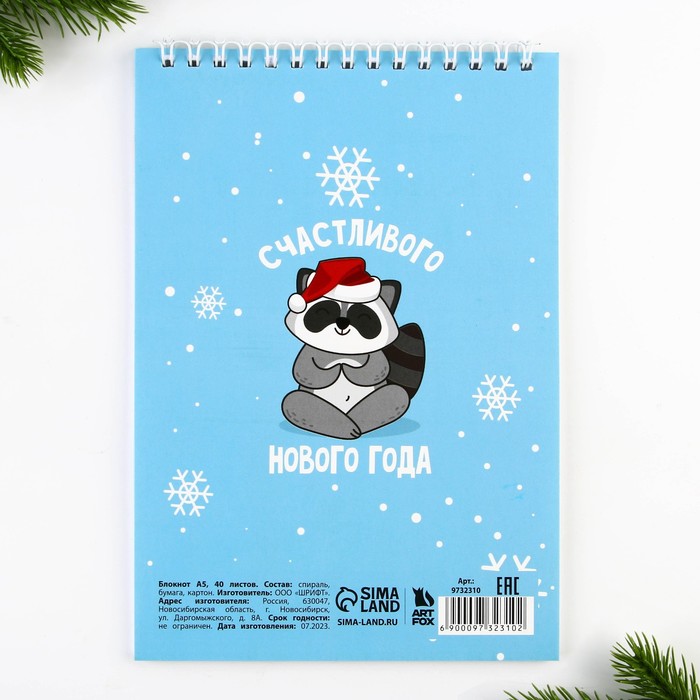 Блокнот детский, А5, 40 листов на гребне, мягкая обложка «Енотик новогодний блокнотик» — Характеристики