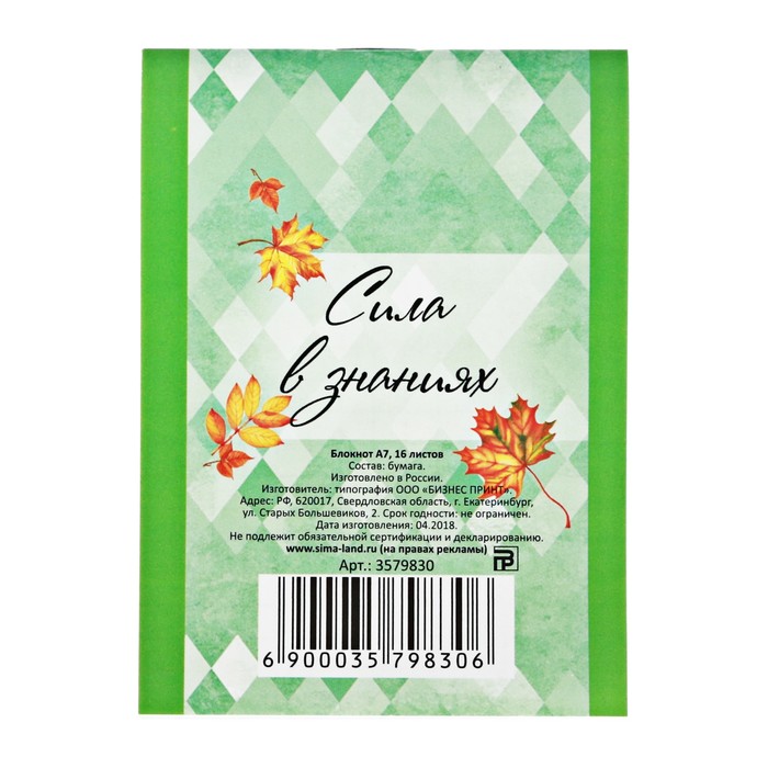 Блокнот "Для заметок", А7, 16 листов — Характеристики
