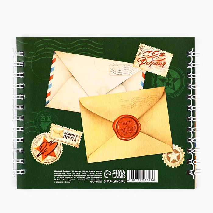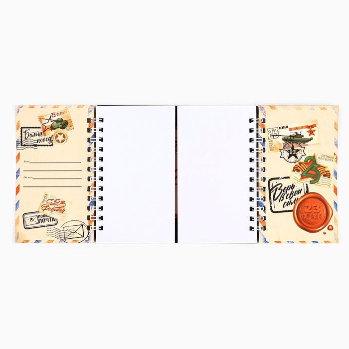 Блокнот двойной, на гребне, мягкая обложка, размер 15×12 см, 48 л. «Почта. 23 февраля» — Характеристики
