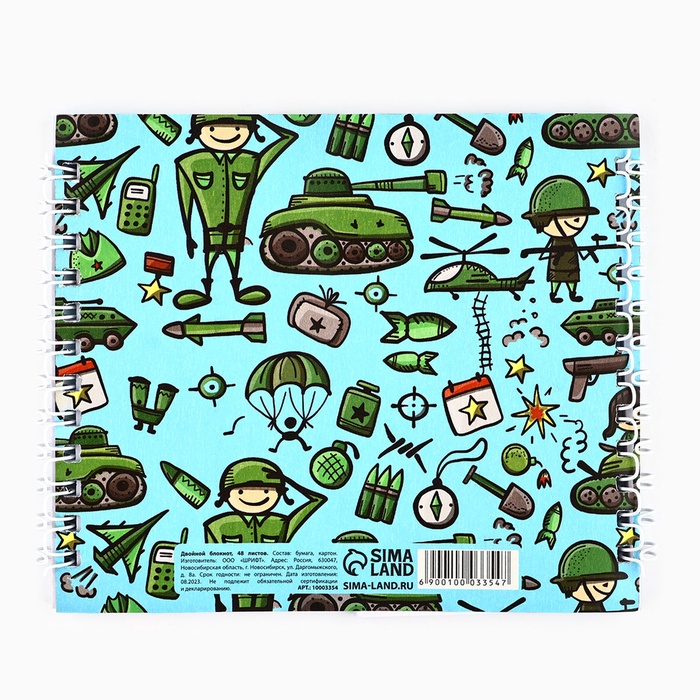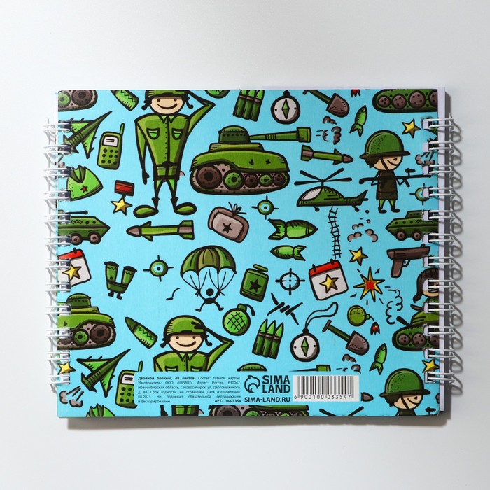 Блокнот двойной, на гребне, мягкая обложка, размер 15×12 см, 48 листов «С днем защитника отечества. 23 февраля» — Характеристики