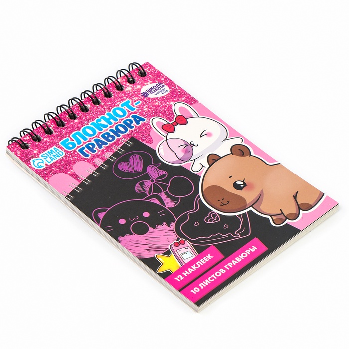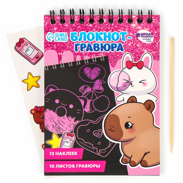 Блокнот-гравюра «Капибара», 10 листов, лист наклеек, штихель, формат А6 — Характеристики
