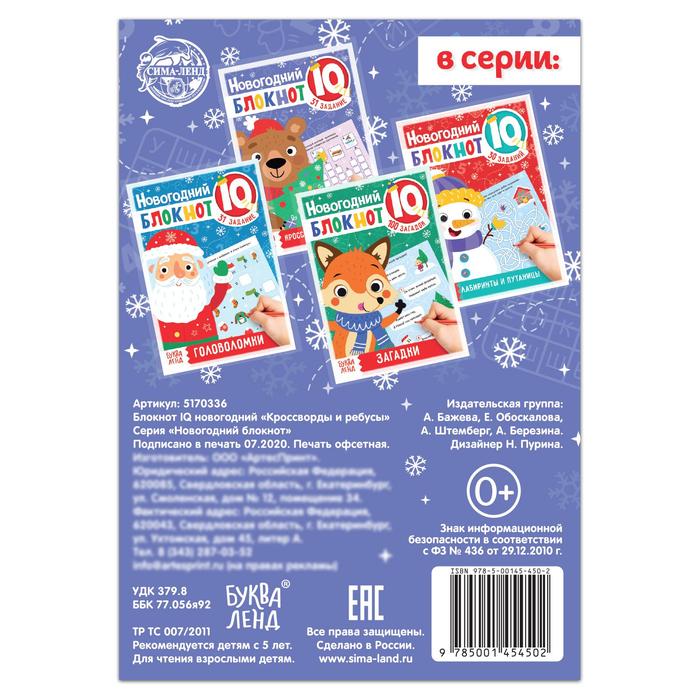 С этим IQ-блокнотом ждать приближения праздника будет проще и веселее! На 36 страницах малыша ждут интересные кроссворды, увлекательные ребусы, а также красочные картинки и забавные новогодние персонажи.
