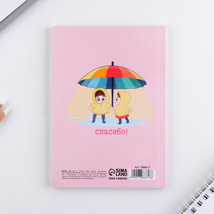 Блокнот «Любимому воспитателю, А6, 40 листов, мягкая обложка — Характеристики