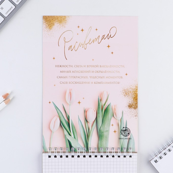 Блокнот, на гребне, А5, 40 л. «С 8 марта золото тюльпаны» — Характеристики