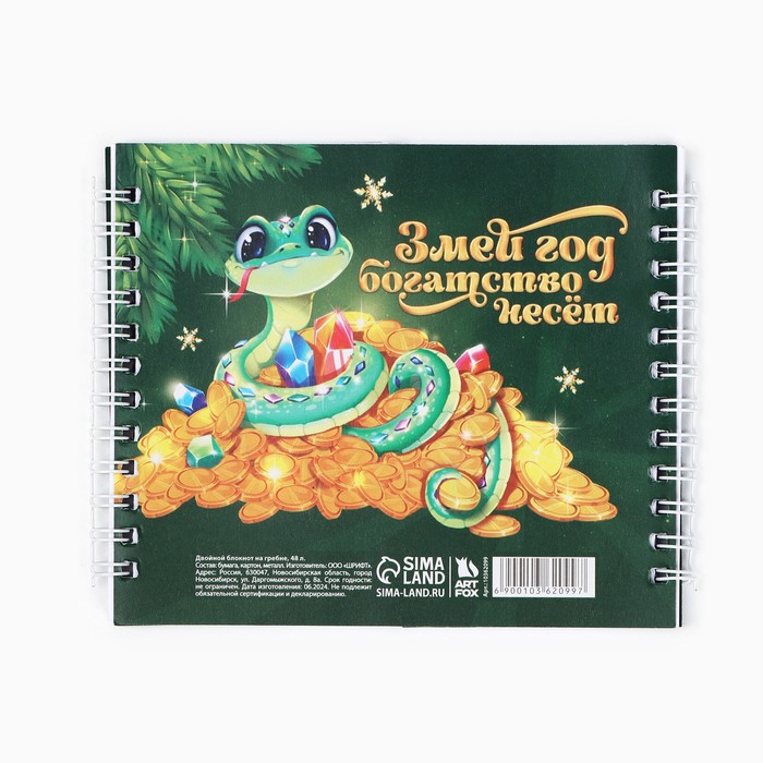 Блокнот новогодний, двойной, 48 листов «Поймай удачу за хвост» — Характеристики
