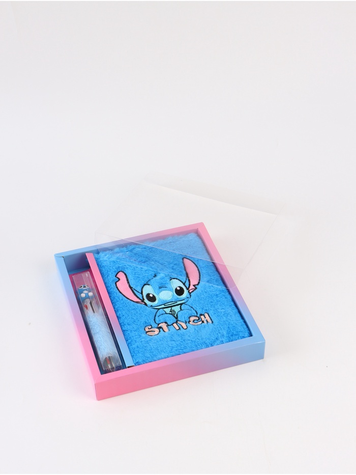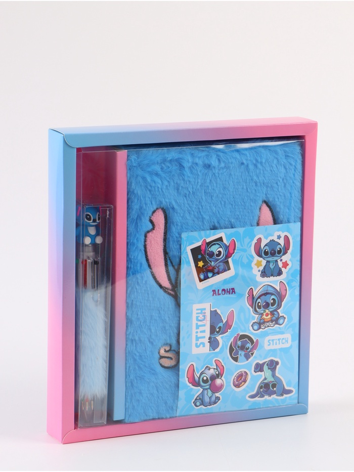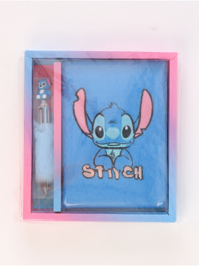 Блокнот пушистый и ручка многоцветная «Стич», голубой