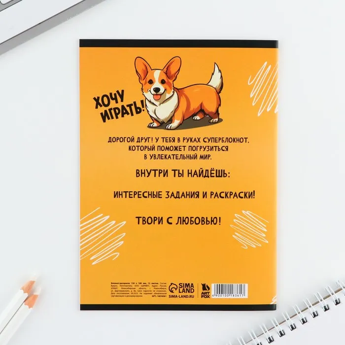 Блокнот раскраска 12 л., 130×180 «Корги» — Характеристики