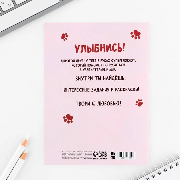 Блокнот раскраска 12 л., 130×180 «Коты» — Характеристики
