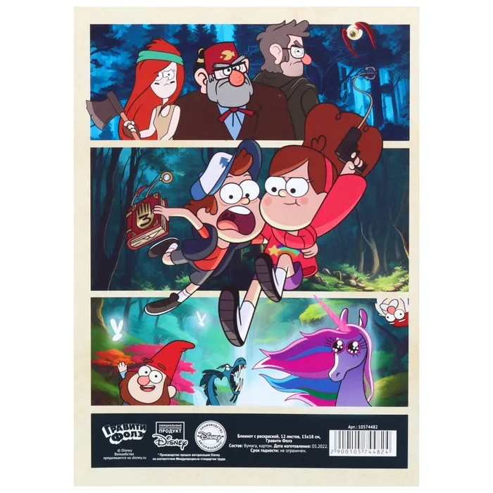 Блокнот раскраска 12 листов, 13×18 см, «Гравити Фолз» — Характеристики