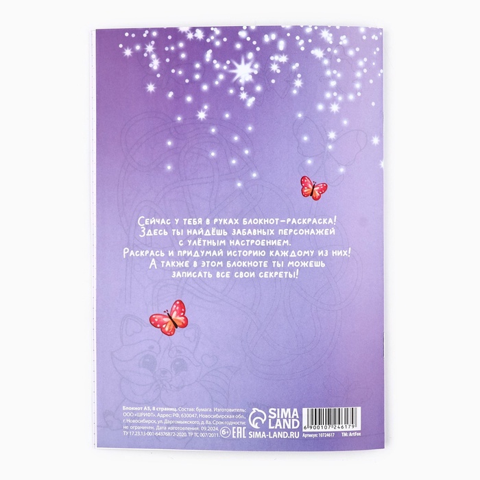 Блокнот раскраска А5, 8 страниц «Панда. 8 марта» — Характеристики