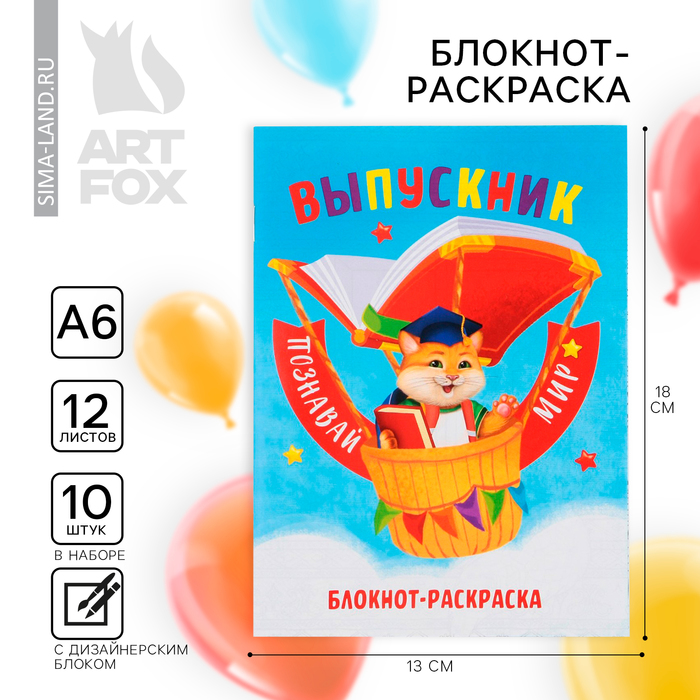 Блокнот-раскраска, А6+, 12 л. «Выпускной:Познавай мир» — Характеристики