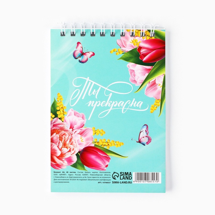 Блокнот «С 8 Марта», А6, 40 листов в клетку, обложка картон — Характеристики
