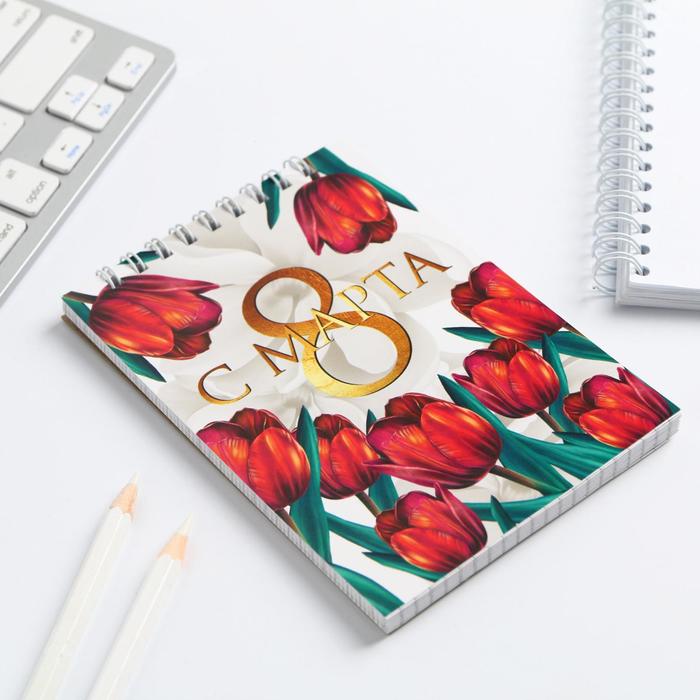 Блокнот «С 8 марта», на гребне, А6, 40 листов — Характеристики
