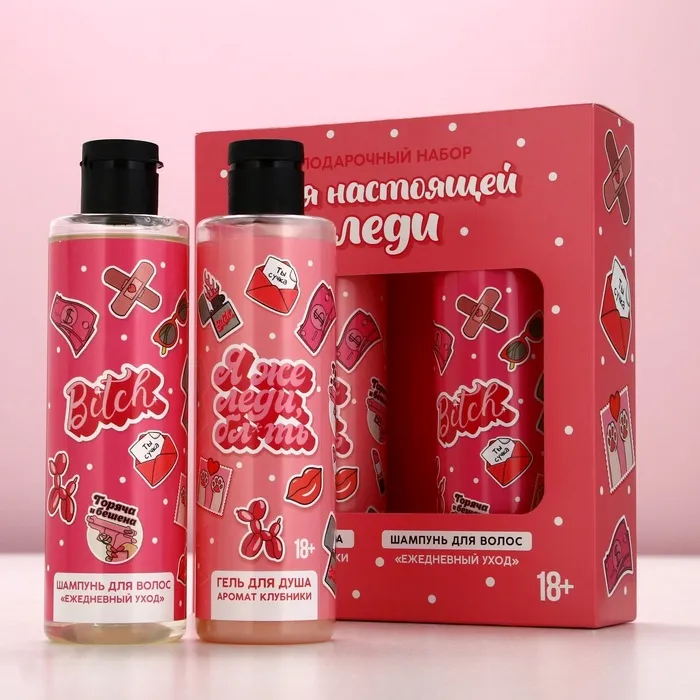 Подарочный набор «Я же леди!»: гель для душа и шампунь для волос, 2×250 мл, 18+, Чистое счастье