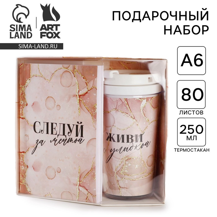Подарочный набор ежедневник А6 80 листов и термостакан 250 мл «Следуй за мечтой»