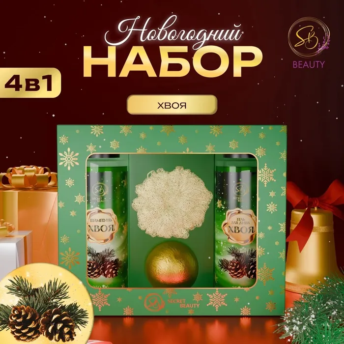 Новогодний подарочный набор косметики «Зимняя вьюга», с ароматом хвои. Зеленая серия