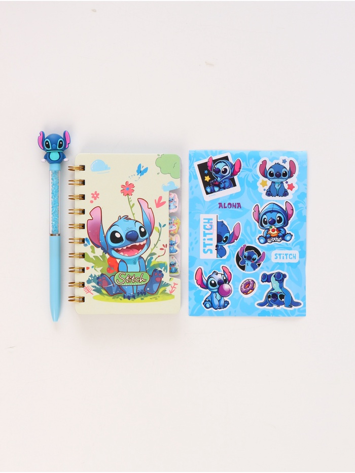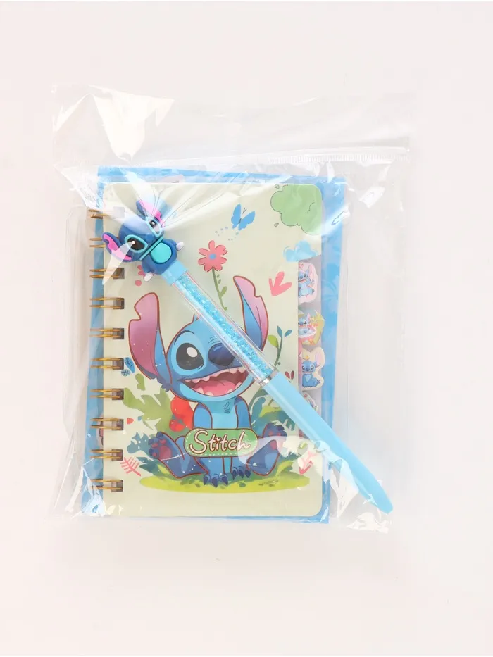 Блокнот с разделителями А6, 65 л ручка с кристаллами и стикеры-наклейки Стич 3