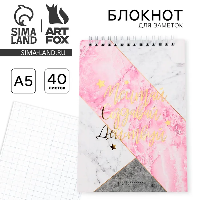 Блокнот с тиснением на гребне А5, 40 л «МРАМОР» — Характеристики