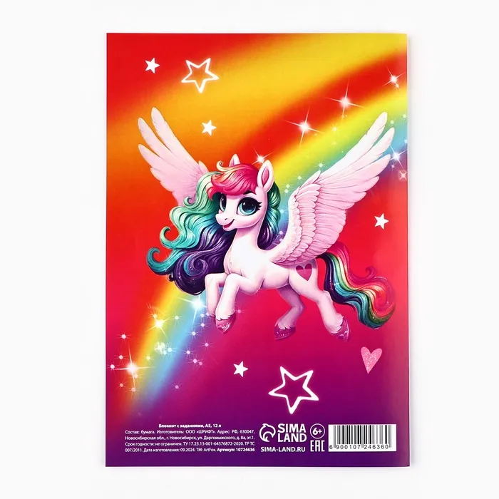 Блокнот с заданиями А5, 12 л. «Единорог» — Характеристики