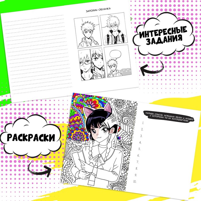 Блокнот творческий с заданиями А6+, 120 листов «Аниме» — Характеристики