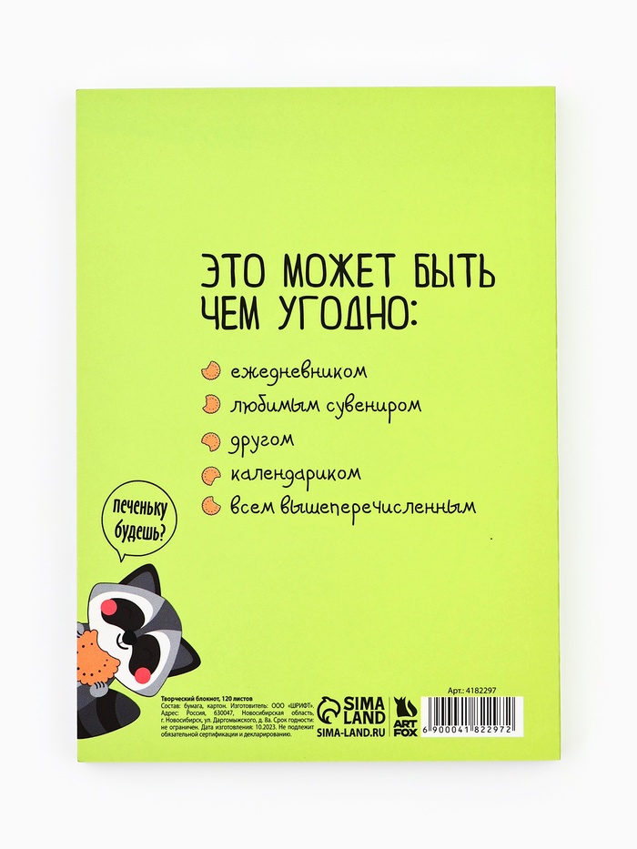 Блокнот творческий с заданиями А6+, 120 листов «Енотик-блокнотик» — Характеристики
