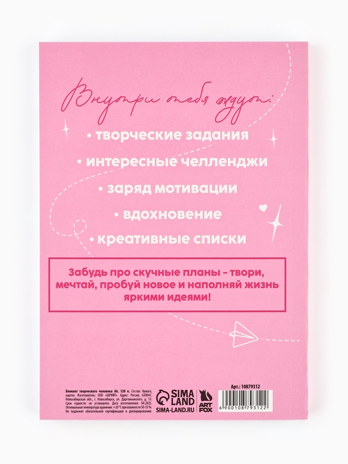 Блокнот творческий с заданиями А6+, 120 листов «Хочу» — Характеристики