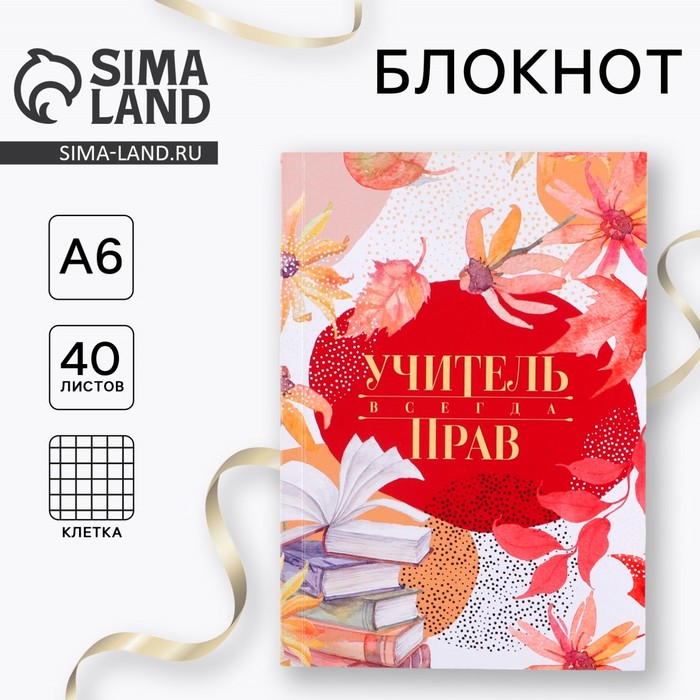 Блокнот «Учитель всегда прав», мягкая обложка, А6, 40 листов — Характеристики