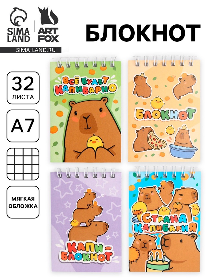 Блокнотов на гребне в клетку А7, 32 л «Капи-блокнот», МИКС — Характеристики