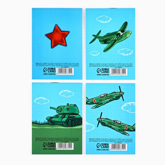 Блокноты А7, 16 листов «Юный герой. 23 февраля» МИКС — Характеристики