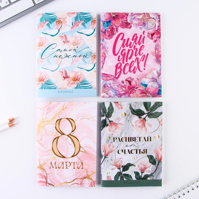 Блокноты «С 8 марта», А6, 32 листа на скрепке 8 шт — Характеристики