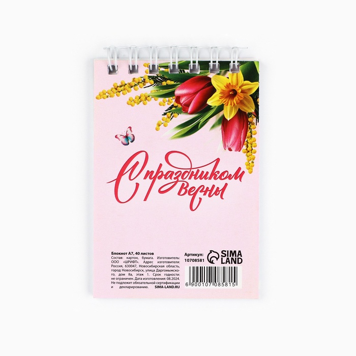 Блокноты в мягкой обложке А7, 32 л. на гребне «С 8 Марта» — Характеристики