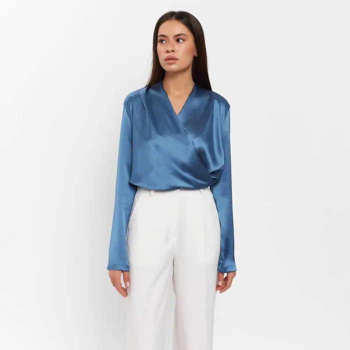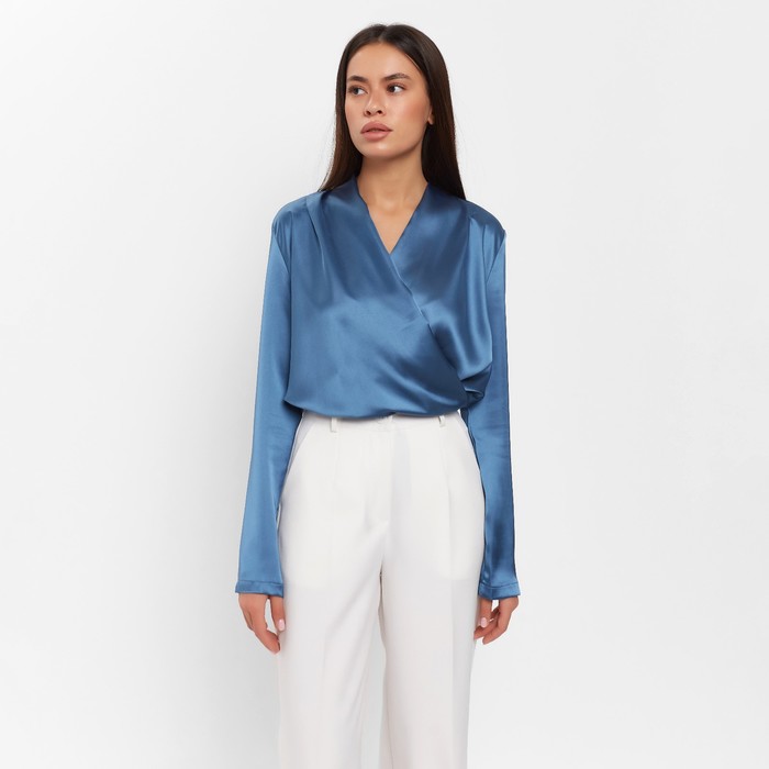 Блуза женская с драпировкой MIST: Classic Collection р. 42, цвет синий — Характеристики