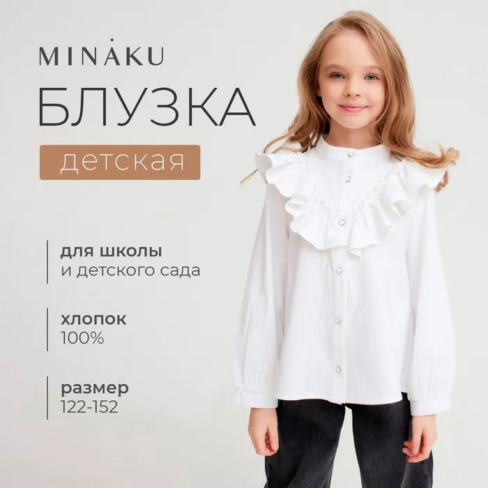Блузка для девочки MINAKU цвет белый, р-р 146 — Характеристики