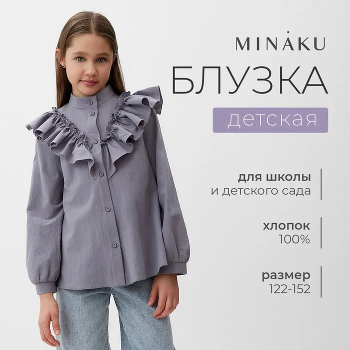 Блузка для девочки MINAKU цвет серый, рост 122 см — Характеристики