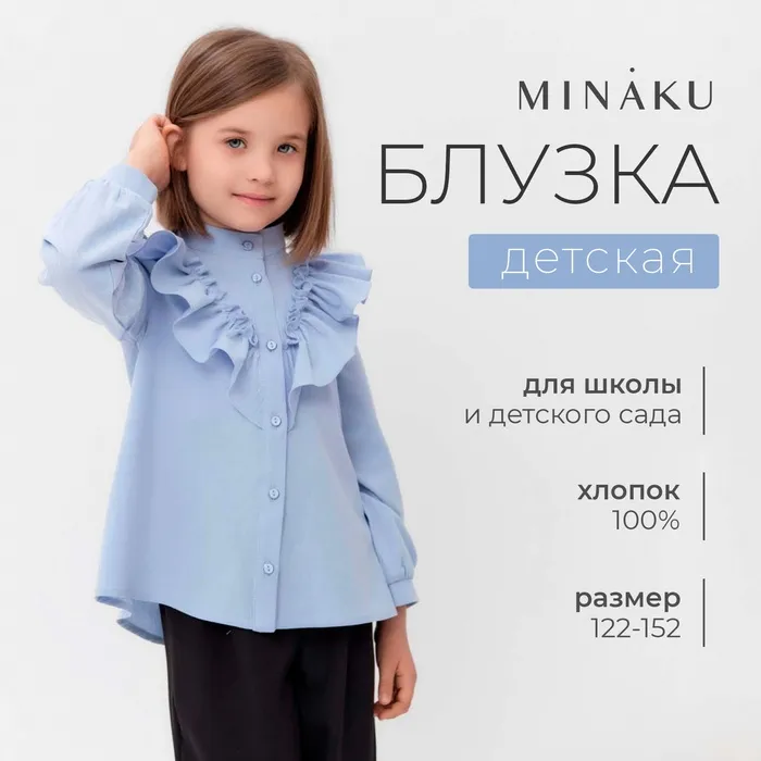 Блузка для девочки MINAKU цвет светло-голубой, рост 146 см — Характеристики