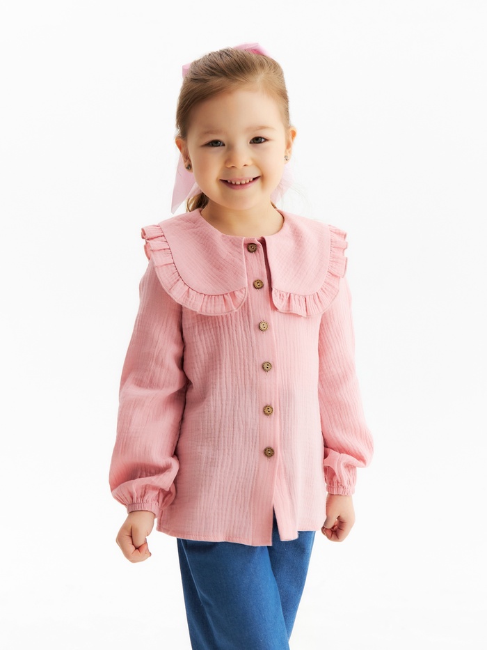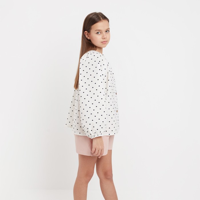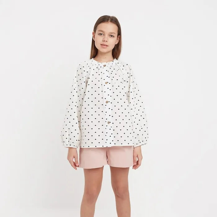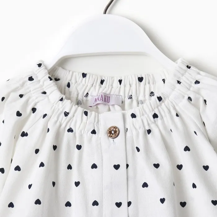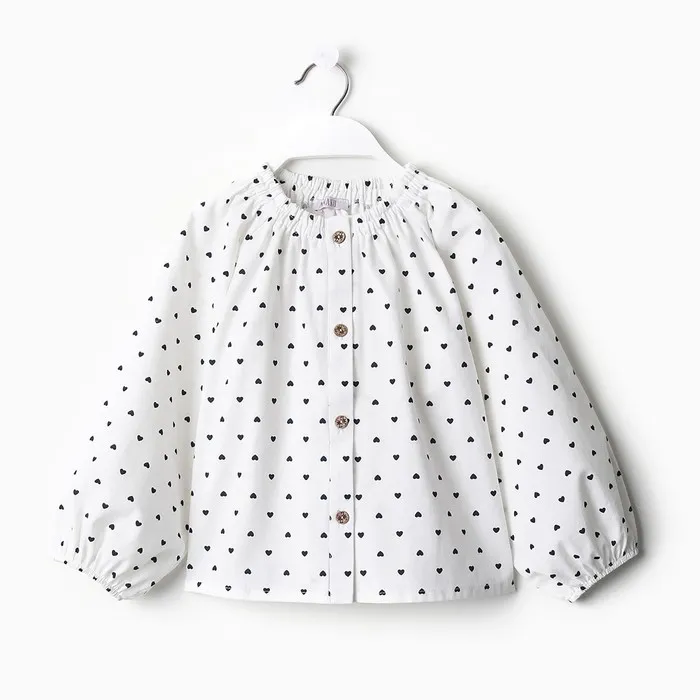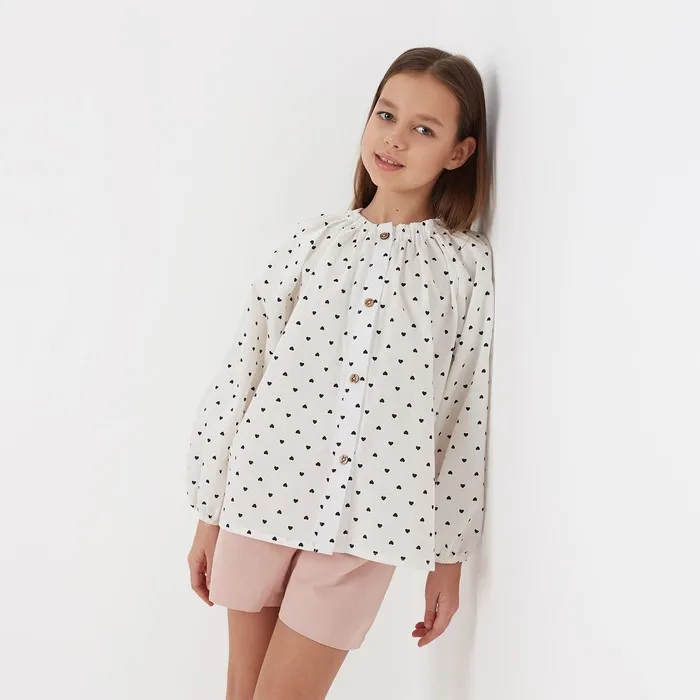 Блузка для девочки с сердечками MINAKU: Cotton collection, белая, рост 128 см — Характеристики