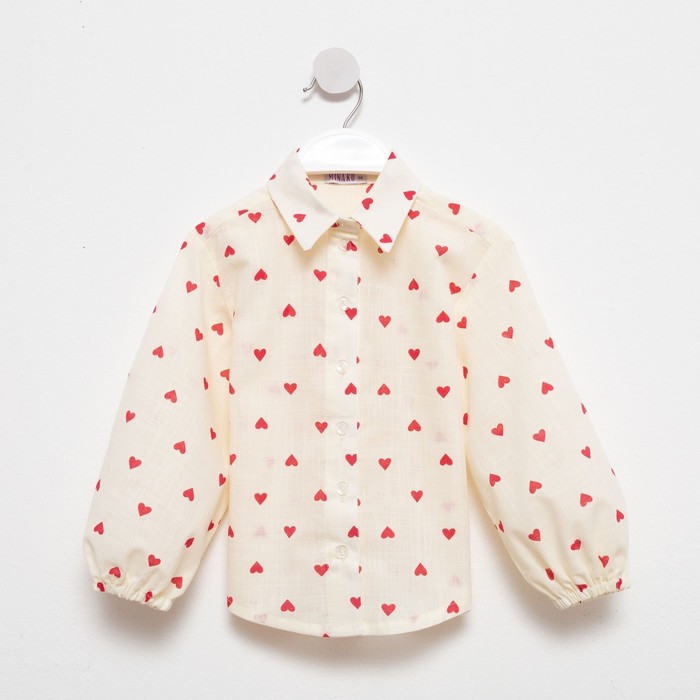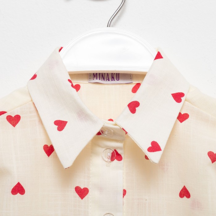 Блузка для девочки с сердечками MINAKU: Cotton Collection, бежевая, рост 98 см — Характеристики