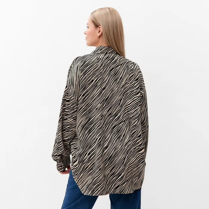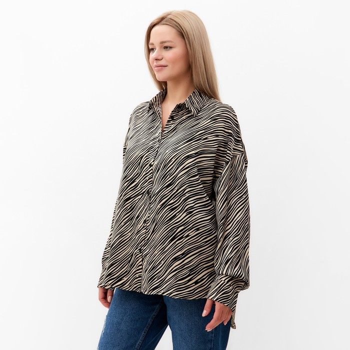 Блузка женская, цвет экрю, принт зебра, размер 54
