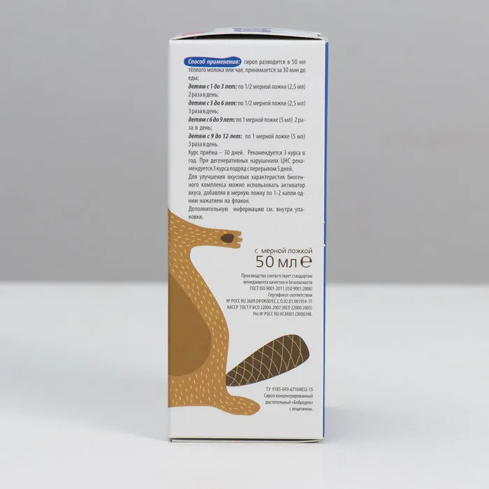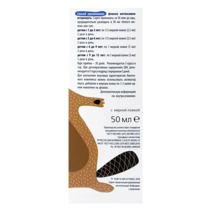 Способ применения: детям с 1 до 3 лет: принимать внутрь по 0,5 мерной ложки (2,5 мл) в разведении в 50 мл тёплого молока или чая за 30 минут до еды 2 раза в день.