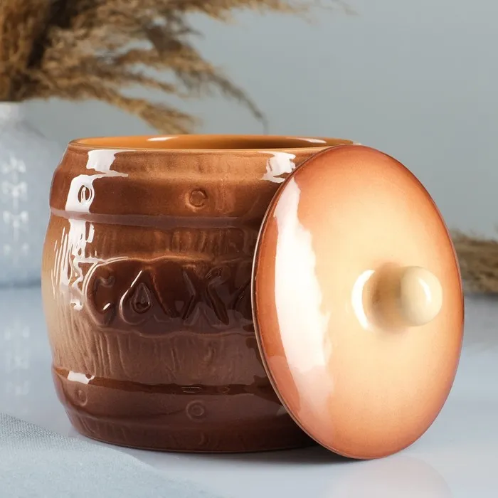 Обратите внимание: бочонок "Сахар" 1,2л / 14х16см, стандарт. Он станет верным помощником в быту и надежно сохранит ваши продукты. Приятным дополнением станет то, что вы можете использовать его не только для хранения, но и готовить в нем! Используйте бочонок для запекания. Благодаря специальной текстуре красной глины, вы получите «эффект русской печи»: продукты готовятся быстрей, сохраняя все полезные свойства и максимум вкуса.