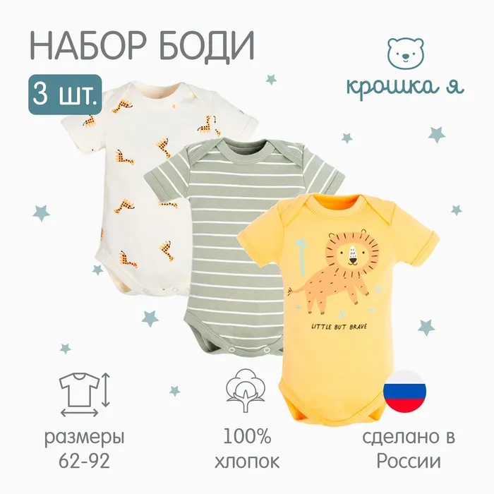 Боди детские Крошка Я «Сафари»-3 шт, рост 62-68 см — Характеристики