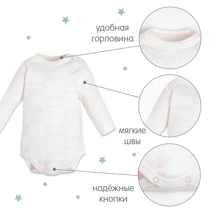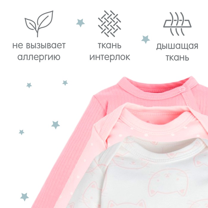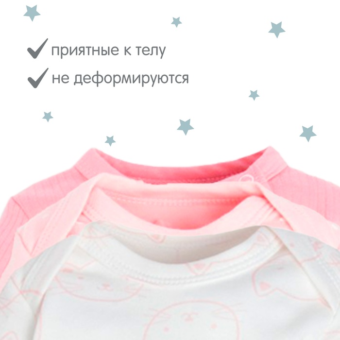 Боди детские с длинным рукавом Крошка Я «Котик»-3 шт, рост 62-68 см — Характеристики