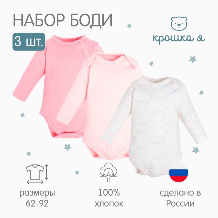 Боди детские с длинным рукавом Крошка Я «Котик»-3 шт, рост 80-86 см — Характеристики