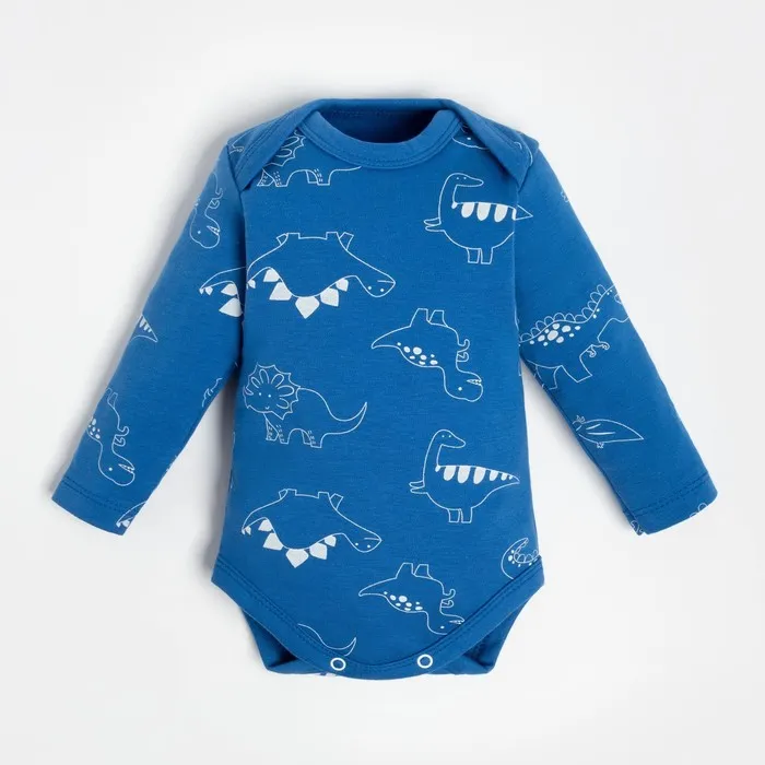 Боди детское с длинным рукавом Крошка Я "Dino", рост 62-68 см, цвет синий — Характеристики